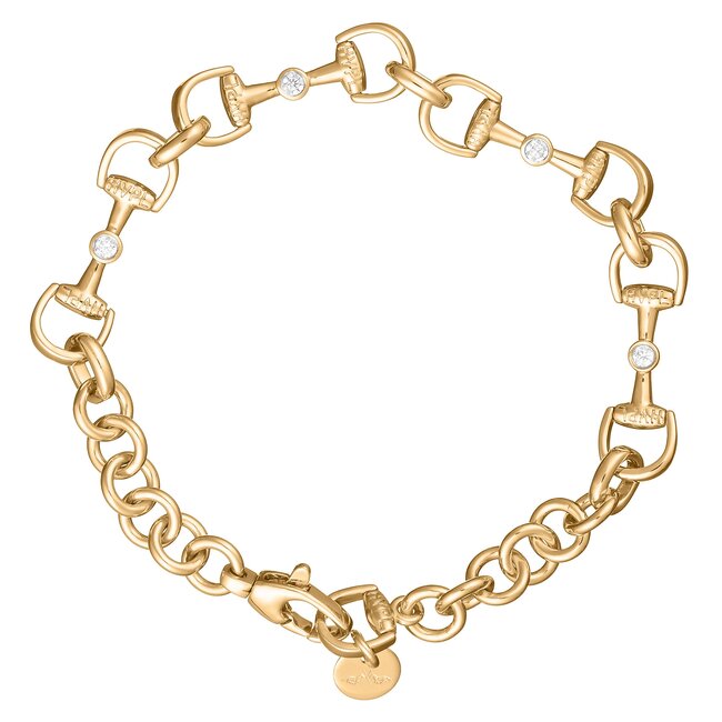 Geef je outfit een elegante finishing touch met de HV Polo Armband HVPSophia. Deze goudkleurige armband is een stijlvolle combinatie van klassieke paardensportdetails en sprankelende glamour.