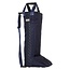 Chique laarzentas van glanzend materiaal met gewatteerd PU, studs op het zijvlak en een mooi metalen plaatje. Alle bandjes zijn gemaakt van glanzende satijntape, de tas heeft contrastkleurige paspels en een rits op de achterkant, en aan de binnenkant zit een tussenschot in het midden zodat je je laarzen los van elkaar kunt opbergen.