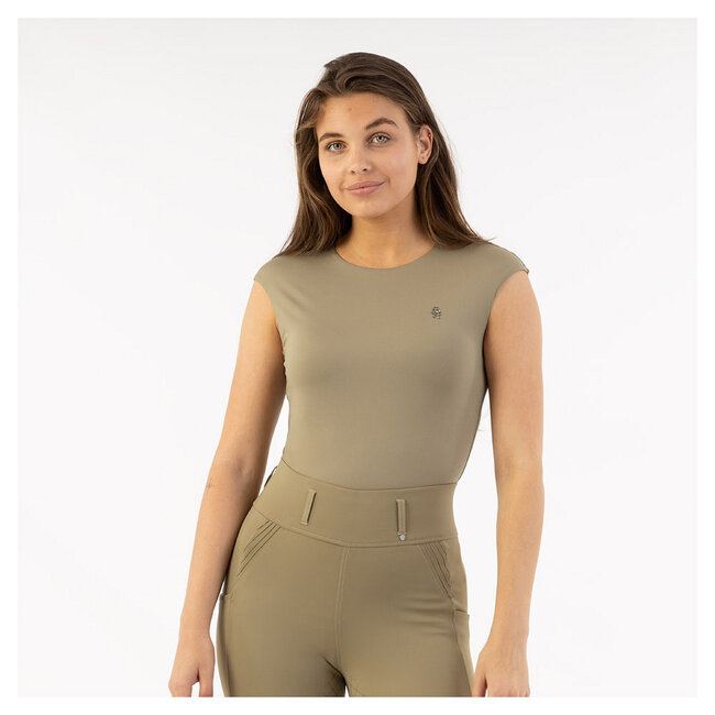 BR-logo van kleine strass-steentjes links op de borst