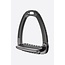 De laterale arm met een opening van 90° is bedoeld om de voet los te maken in het geval van een val. De licht georiënteerde haak zorgt voor een natuurlijke beenpositie. Het anatomische loopvlak met een helling van 5° helpt om de hielen laag te houden en de ergonomische vorm stimuleert de juiste positie van de voet in het midden van de stijgbeugel. Het netwerk van gaten, gecombineerd met de 3D-structuur, garandeert een optimale grip en een snelle verwijdering van vuil.